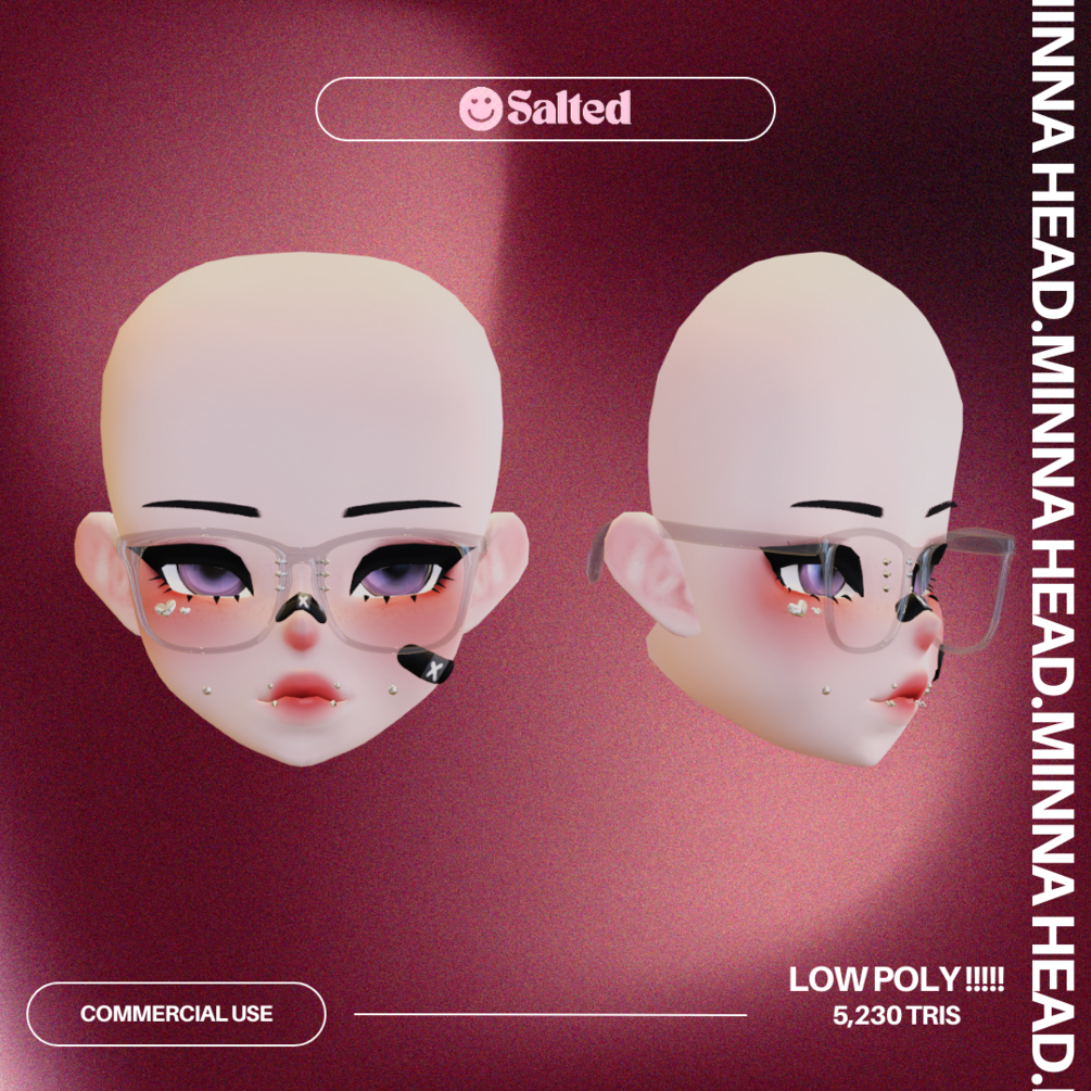 This head was given a major remake on 4/12/23, all new textures & meshes from scratch includes my scratch glasses, band aids & piercings (removable).