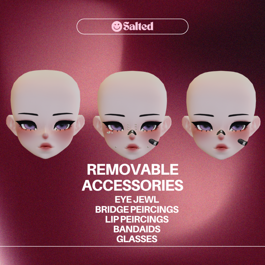 This head was given a major remake on 4/12/23, all new textures & meshes from scratch includes my scratch glasses, band aids & piercings (removable).